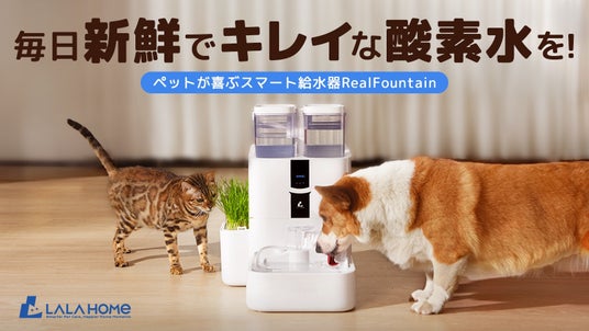 毎日の給水や洗浄の手間から解放し、酸素たっぷりの水を提供することで、ペットの水分補給を美味しく楽しいものに変えるLALAHOME(ララホーム)のスマートペット給水器「RealFountain(リアルファウンテン)」がついに日本に上陸!海外先行販売で3,800万円を超える資金を調達したこの大人気商品で、ペットの健康をサポートします。
