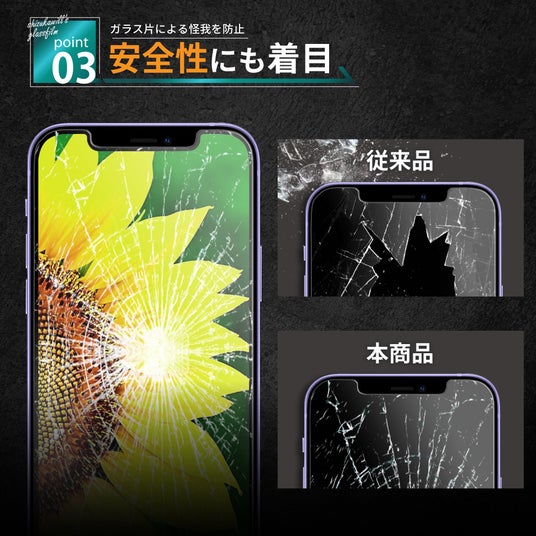 ●ガラスフィルムに黒いフチがついているため、ガラスの端が欠けにくい