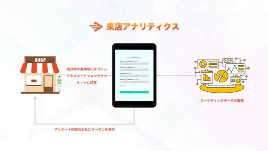 また、「来店アナリティクス」では、初期投資や技術的障壁を最小限に抑えるため、BeaconやWi-Fiを使った複雑な来店計測ではなく、アンケート型のシンプルな計測方式を採用しています。