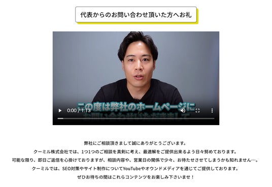 - thanksページに動画のお礼メッセージ、飽きさせないようにおすすめコンテンツ配信