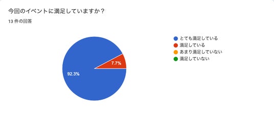 参加者16名とその保護者を対象に、イベント実施後にアンケートを実施したところ、「今回のイベントに満足していますか」の設問に100%の方が「満足している」と回答しました。