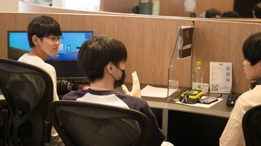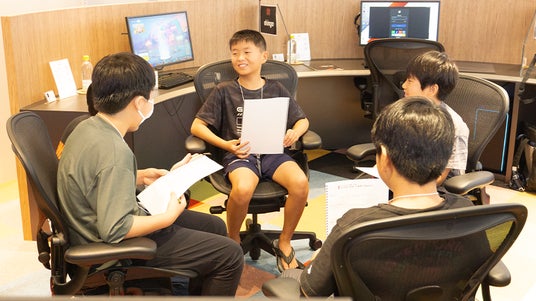 「2on1レッスン」は、参加者2名に対してコーチ1名が専属でつき、プレイスタイルや戦略などのアドバイスを受けるといった内容です。このレッスンでは、Fortniteのスキル向上とともに、学びの基本となるPDCAサイクルを自然と身につけることを目的としており、参加者たちはコーチのアドバイスに真剣に耳を傾け、自身のプレイを振り返り、次に生かすための改善点を学びながら、積極的に質問を投げかけていました。