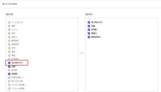 友だち登録をした経路を示す「流入時タグ」。今までのanybotでは、このタグを表示できるのは「ユーザ画面」に限られていました。