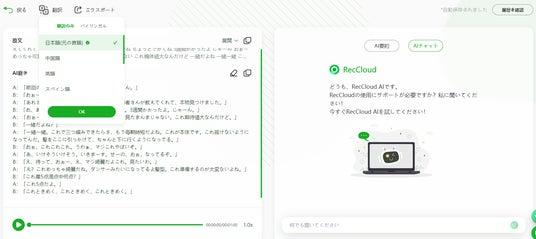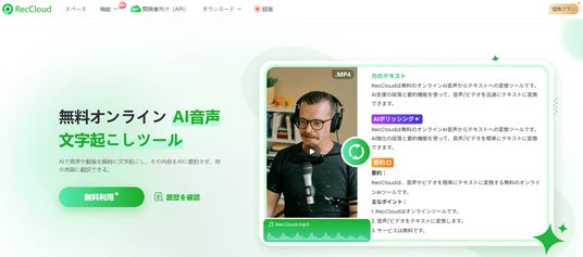 新機能の利用は極めて簡単です。RecCloudサイトの文字起こしのウェブページを開き、またはRecCloudアプリからAI文字起こしをタップし、動画や音声ファイルをアップロードすればしばらく待てばAIにより音声を認識し、テキスト化で出力してくれます。