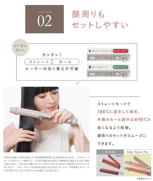 2WAYアイロンでも使いやすい設計を追求し、簡単に様々なスタイリングが自由に楽しめます。
