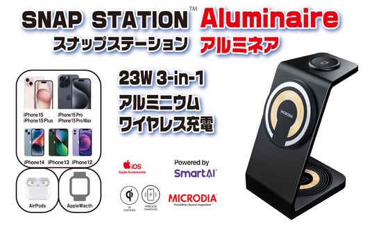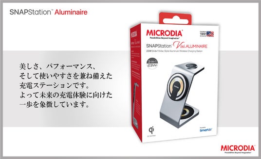 宏福商事合同会社(本社:東京都荒川区)は、MICRODIAの総合代理店としてMICRODIAのワイヤレス充電器「SnapStation Aluminaire」をヨドバシカメラ マルチメディア(Akiba店、横浜店、梅田店、京都店、仙台店)で販売を9月から順次開始致します。