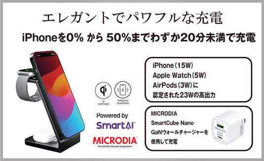 MICRODIAのワイヤレス充電器新製品「SnapStation Alminaire」販売開始
