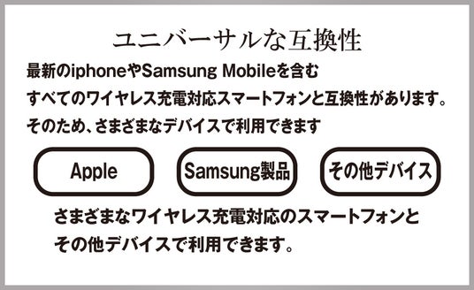 最新のSamsungモバイルを含む、すべてのワイヤレス充電対応スマートフォンにも互換性があります。