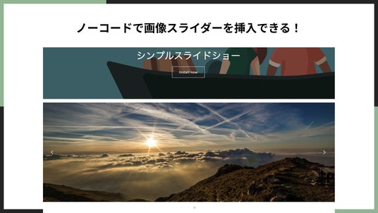 「シンプルスライドショー|お手軽画像スライダー」は、ノーコードで画像スライダーを挿入できます。