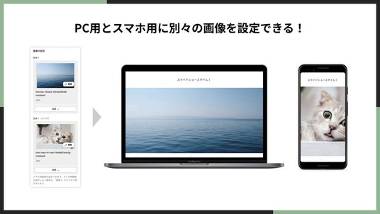 「シンプルスライドショー|お手軽画像スライダー」は、PC用とスマホ用に別々の画像を設定できます。