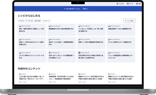 プロンプトを書かずに生成AIを活用できるレシピ機能を実装。ベータ版参加メディア企業の声を反映し、さらにカンタンに高品質なコンテンツ生成を実現。