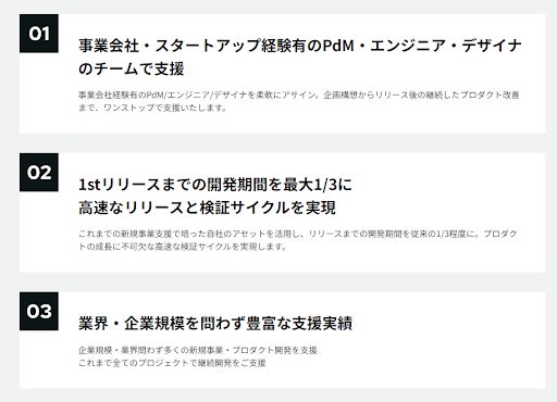 こうした企業様とのお取組みを通じて、「成長企業の新規事業の高速立ち上げ・検証」に特化した支援事業として、「Product Boost」事業としての提供に至りました。