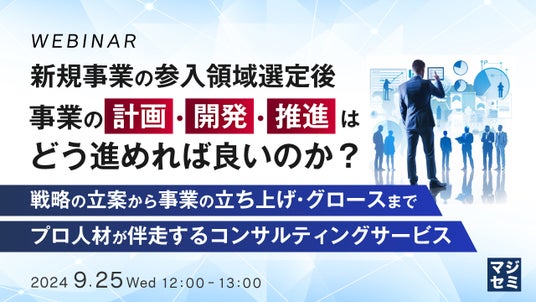 マジセミ株式会社は「新規事業の参入領域選定後、事業の計画・開発・推進はどう進めれば良いのか?」というテーマのウェビナーを開催します。