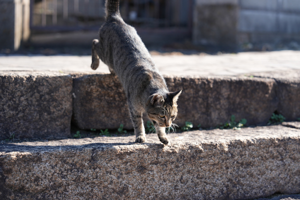 シャッタースピード編の最後は、流し撮り。猫って歩くとき、意外と頭が上下に動かないので、うまくすれば流し撮りがハマるのだ。