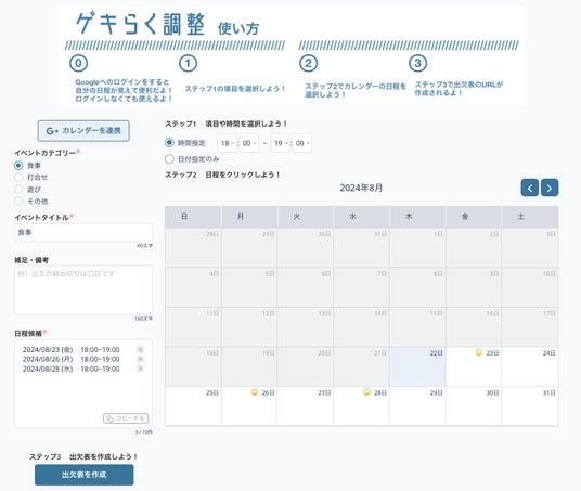 日程調整が劇的にラクに! 新Webサービス「ゲキらく調整」が無料リリース!Googleカレンダーと連携で、日程調整が自動化される新時代へ!