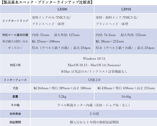 今回取り扱いを開始した「LX500」「LX910」は、シンプルな操作でラベル印刷の効率化・高品質化を実現する製品です。1台で異なる大きさ・デザインの複数ラベルに対応でき、店舗やオフィスなど、様々な用途に合わせたオリジナルラベルの内製が可能です。保守についても日本国内にコールセンターを設置し、センドバック保守 (故障した製品を専用窓口に送付し、修理・交換対応を行う) サービスを提供しているため、安心してお使いいただけます。