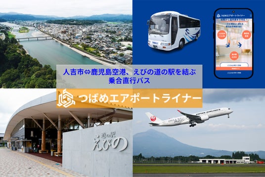 つばめエアポートライナーは主に観光客やビジネス層向けに人吉市内の宿泊施設や駅等に13ヵ所の停留所を設置し、それぞれの停留所から鹿児島空港、道の駅えびのを乗合直行バスにて結ぶことで、人吉市と鹿児島空港の交通の利便性を高めるサービスです。
