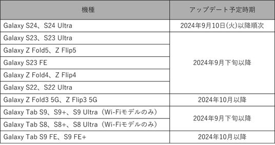サムスン電子ジャパン株式会社は、新たなUIアップデートにより最新のGalaxy AI機能をより多くのGalaxy端末に提供するOne UI 6.1.1※1のリリースを発表いたしました。これに伴い、この度、国内販売モデルのアップデートが2024年9月10日(火)以降、順次開始されることをお知らせいたします。