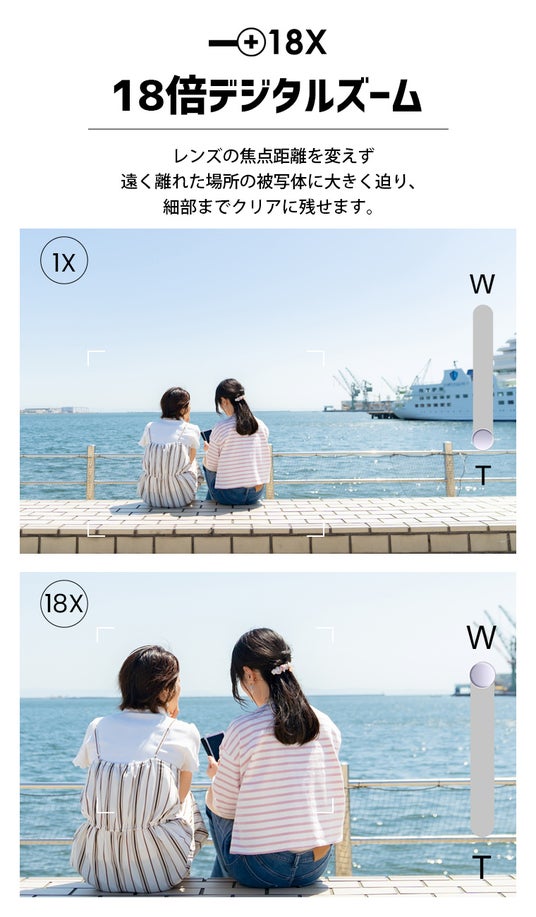 18倍の光学ズーム機能で、遠くの被写体も鮮明に捉えます。