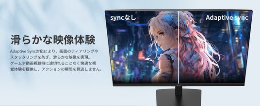 - 【Adaptive Syncと目の保護機能】Adaptive Sync技術を採用しているため、ゲームや動画再生時のカクツキやティアリングを防ぎ、より滑らかな映像を提供します。また、ブルーライト軽減機能とフリッカーフリー設計により、長時間使用しても目の疲れを抑え、快適な視聴体験をサポートします。