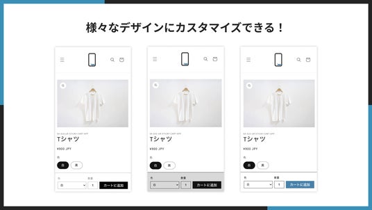 「シンプル追従カート|追従購入ボタン(Buy Button)」では、追従カートを様々なデザインにカスタマイズできます。