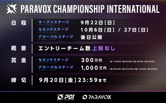 賞金総額約1,600万円のPARAVOX公式eスポーツ大会「PARAVOX CHAMPIONSHIP INTERNATIONAL(PCI)」の開催が決定!