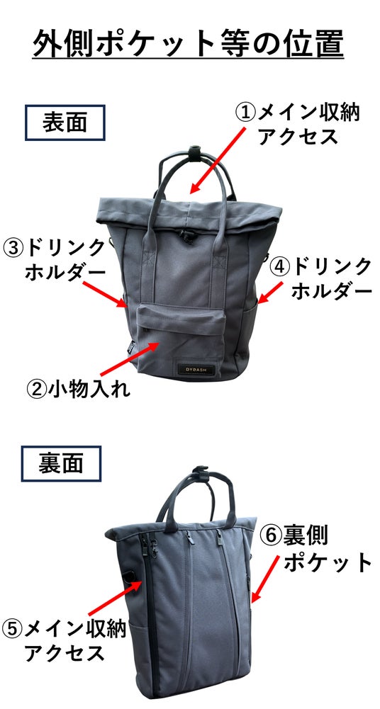 前作の”Rollite多機能バッグ”の際は無かったポイントですが、皆様の要望を受けて、外側のポケットを追加しました。