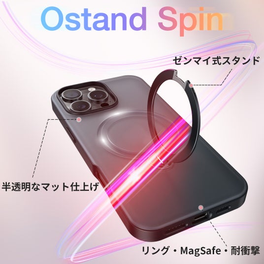 また、基礎版の「Ostand Spin」シリーズは半透明ブラックのパネルにマット質感で、落ち着いた雰囲気を伝えます。見た目は控え目ですが、マット質感とサラサラの手触りは高級感を展示します。ビジネスマンやガジェット系などに大人気!