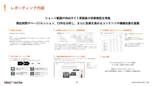 本業務提携により、SNSに最適化されたショート動画の制作だけでなく、ショート動画のWebサイトへの実装を可能にして、CVまでスムーズに繋げる新サービス「SNS×Web連動型ショート動画マーケティング支援」をテテマーチより提供いたします。企業は本サービスの導入により、SNSとWebサイトを横断したマーケティングをおこない、ショート動画制作における費用対効果を高め、WebサイトのCVR向上と売上拡大に期待することができます。さらに、お客様がWebサイトに訪れて動画を視聴したデータは企業の資産となり、マーケティング施策にご活用いただくことも可能です。