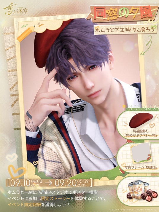 INFOLD PTE. LTD.は、全世界1億DLを突破した『恋とプロデューサー』の世界観を継承した完全新作恋愛シミュレーションゲーム『恋と深空』において、9月10日(火)6時よりイベント「思い込めた絵」を開催することをお知らせいたします。