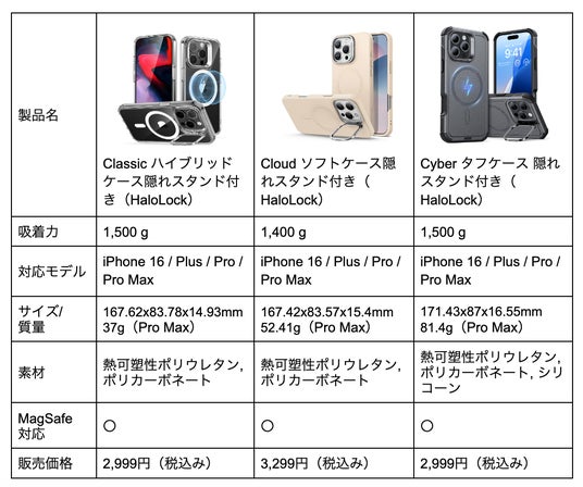 ■iPhone 16シリーズ対応 HaloLock(TM)ケースの新製品3種