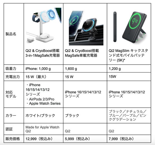 ■ iPhone 16 対応 MagSafe Qi2充電器の新製品3種