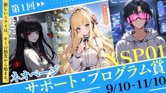 株式会社ネオページ(代表取締役社長:小川 傑子/所在地:東京都)は2024年9月10日より、WEB小説投稿サイト『ネオページ』( https://www.neopage.com/ )にて、小説投稿イベント「ネオページ・サポート・プログラム」(通称NSP)賞を開催することをお知らせいたします。