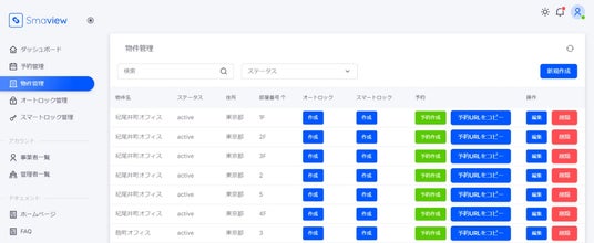 Smaview 2.0は、新築賃貸物件の内見、マンスリー・民泊運営、施工管理、オフィスビル管理、倉庫・物流センターなど、様々な利用シーンにおいて、利便性とセキュリティを両立させたスマートなキーレスサービスを実現します。