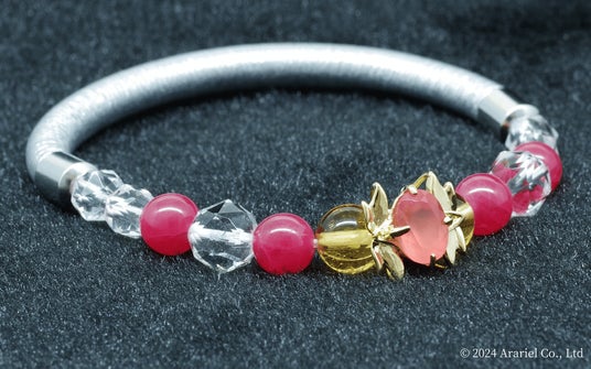 また、ブレスレットのデザインは、代官山発ジュエリーブラント「MasPender.」の天然石ジュエリーブレスレット【M-Crystal】でお馴染みの、ジュエリーパーツと天然石が組み合わさったエレガントなデザインです。