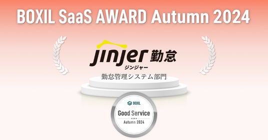 jinjer株式会社(本社:東京都新宿区 代表取締役社長:桑内 孝志)が提供するクラウド型人事労務システム「ジンジャー」は、スマートキャンプ株式会社(以下「スマートキャンプ」)が主催する「BOXIL SaaS AWARD Autumn 2024」の勤怠管理システム部門で、「ジンジャー勤怠」が「Good Service」に選出されたことをお知らせします。