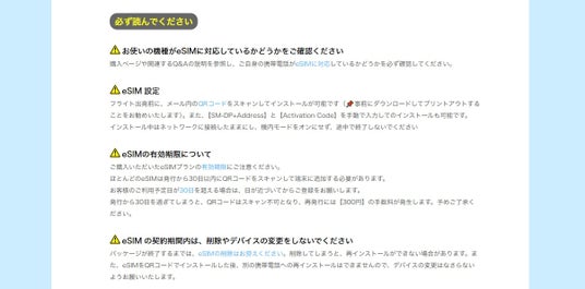 今回のリニューアルでは、eSIMとSIMカードの予約手順と注意事項をよりわかりやすく届くことができるように内容の充実を図り、デザインやページ構成などを一新しました。