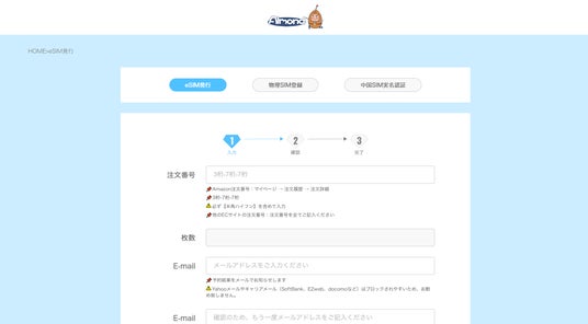 ※只今AlmondSIM公式サイトでは、eSIMのQRコードが直接購入の時に入力したメールアドレスに発行するため、発行予約の対象外となっています。