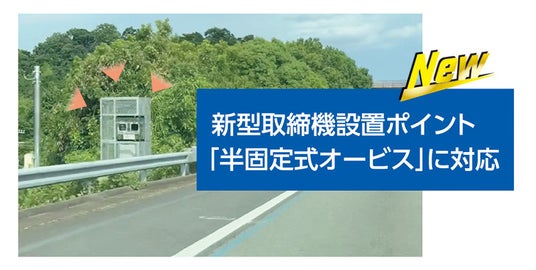 主に高速道路の路肩に設置されている「半固定式オービス」、一般道のゾーン30エリアに設置されている新型取締機設置ポイントの1km手前と500m手前で警告します。