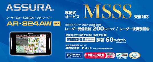 移動式オービスMSSS受信対応で、従来製品よりもレーダー受信性能を200%アップ、誤報を60%カットした、レーザー式オービス対応セーフティレーダーASSURA「AR-824AW」を9月発売