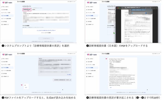 音声・文章の多言語翻訳機能を活用し診療情報提供書の英訳を実施したイメージ(画像)