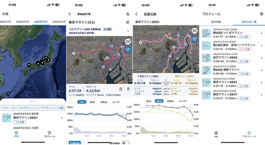 参加したマラソン大会と種目をGPSログから自動判定。大会結果を簡単に一元管理できるようになります。
