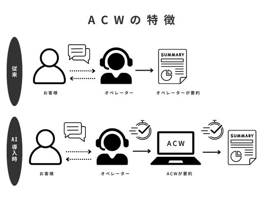 アフターコールワーク(以下ACW)は、顧客との電話が終了した後、担当者がその会話内容を記録し、必要な作業をまとめるためにかかる時間を指します。