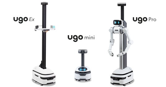 オフィスビルや商業施設の警備用途やメーター点検を行うロボットとして、「ugo Pro」「ugo Ex」「ugo mini」の3つのモデルを提供しています。「ugo Pro」は、2本のアームと表情豊かな顔ディスプレイを備えており、エレベーターの操作によるフロア移動に優れた機能を持っています。「ugo Ex」はユーザー自身によるカスタマイズが可能で、多様なセンサーやカメラを追加することができます。「ugo mini」はコンパクトで機動性が高く、狭い空間での点検作業に適しています。