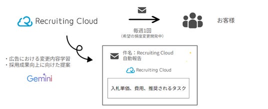株式会社HR Force(本社:東京都中央区、代表取締役社長:村田 泰子、以下HR Force)は、採用マーケティングツール「Recruiting Cloud」において、Google社の生成AIサービス「Gemini」および「Google Cloud」を用いた新機能を9月上旬よりリリースすることをお知らせいたします。