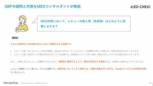 当社のMEOコンサルタントが、MEO対策に関する疑問点についてレポート内で詳細に回答しています。
