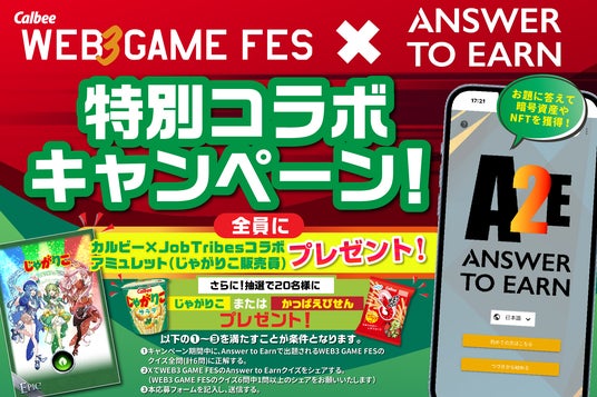 シンガポールを拠点にグローバルでGameFiプラットフォーム事業を展開するDigital Entertainment Asset Pte.Ltd.(本社:シンガポール、Founder&CEO:吉田 直人、Founder&Co-CEO:山田 耕三、以下、DEA)は、カルビー株式会社(本社:東京都千代田区、代表取締役社長兼CEO:江原 信、以下、カルビー)と、株式会社博報堂キースリー(本社:東京都港区、代表取締役社長:重松 俊範、以下、博報堂キースリー)が企画する、Web3ならではの相互運用性を活用したキャンペーン「WEB3 GAME FES」に参加し、カルビーの「じゃがりこ」、「かっぱえびせん」と、DEAが運営するNFTカードバトルゲーム『JobTribes』がコラボしたNFTを9月11日(水)から販売することを発表いたしました。