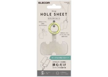 ■スマートフォンとケースの間に挟むだけでストラップホールを追加できる、1口タイプのストラップホールシートです。