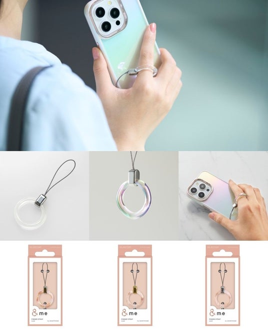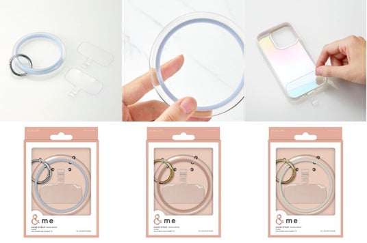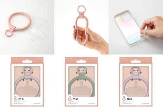 クリアリングとカラビナの組み合わせで、様々なファッションに合わせやすい「&me」シリーズのハンドストラップ・クリアリング