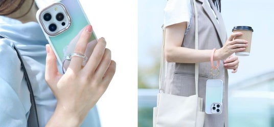 きらめくクリア感が特徴のフィンガーストラップは指に装着することで、スマートフォンの操作時や、バッグやポケットから取り出すときの落下を防ぎます。リングは揺らめく水面のようにゆらぎと丸みのあるシルエットで優しい印象を与えます。